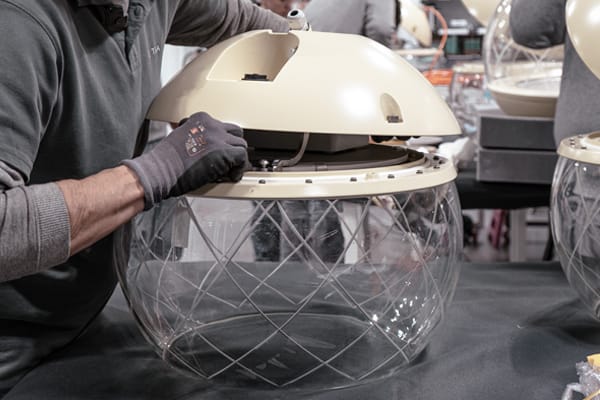 Het armatuur heeft een unieke glazen kap met gravures en voldoet aan strenge eisen op het gebied van duurzaamheid, veiligheid en onderhoud.
