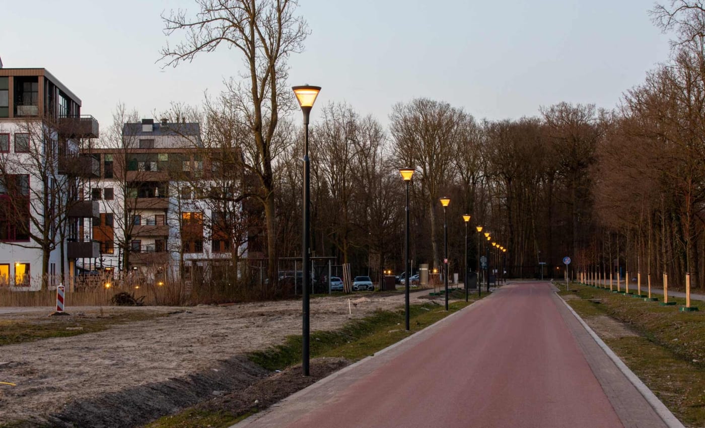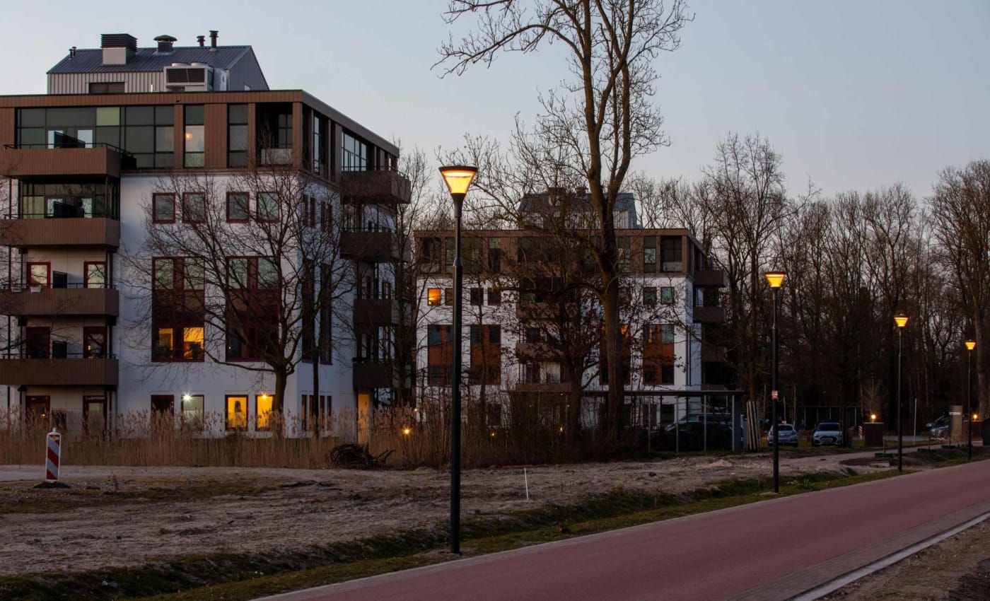 Langs de Laan van Rijnhuizen in Nieuwegein is nieuwe innovatieve verlichting geplaatst die oog heeft voor zowel mens als natuur. Deze groene wijk ligt direct aan het Merwedekanaal. Niet alleen bewoners voelen zich hier thuis, ook vleermuizen zijn vaste bezoekers van het waterrijke gebied.